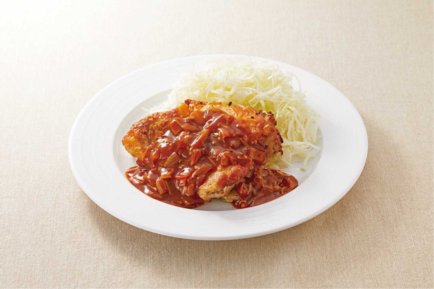 赤ワインのコクとトマト・しめじ・えのきのうま味たっぷりの濃厚ソースが特徴です!